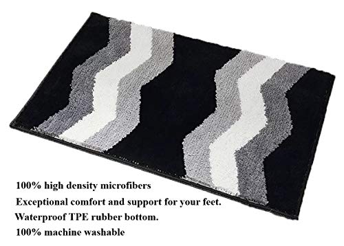 EBoutik Zerbino antiscivolo per interni, lavabile in lavatrice, tappeto antisporco (zig zag bianco e nero, 50 cm x 80 cm)