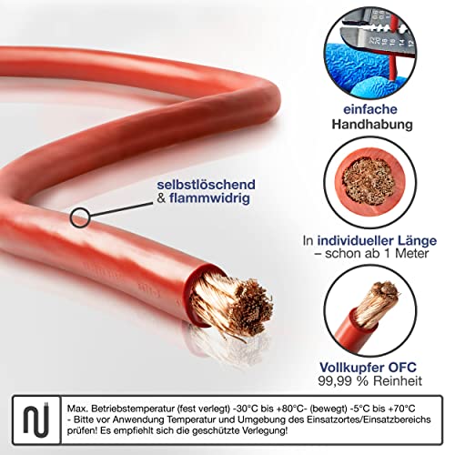Sezioni trasversali da 2,5 mm² a 70 mm² rosso come Plus (+) cavo batteria (2,5 mm² - 4 mm² - 6 mm² - 10 mm² - 16 mm² - 25 mm² - 35 mm² - 50 mm² - 70 mm²)