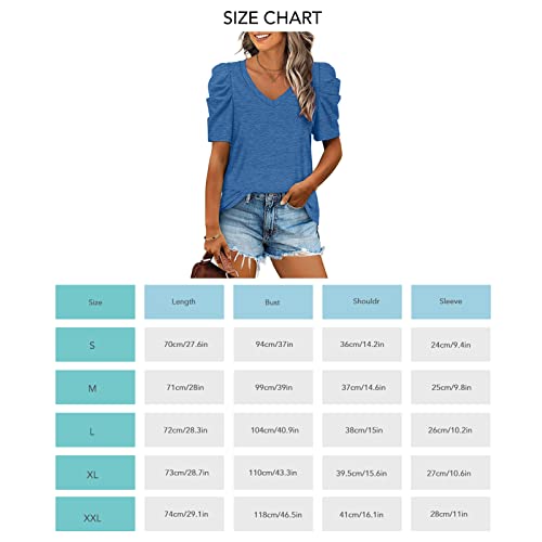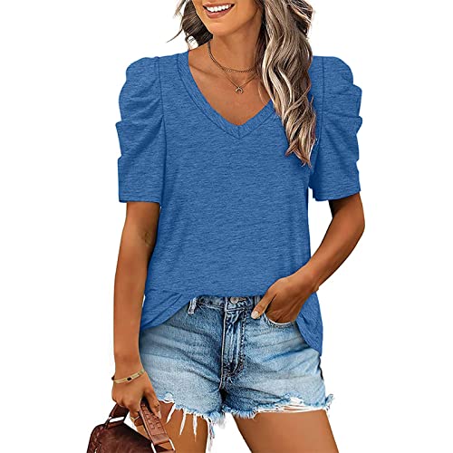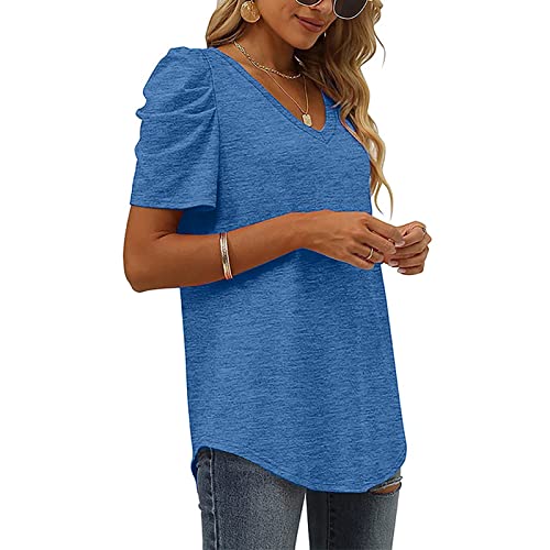 EBTOOLS Maglietta a Maniche Corte da Donna con Scollo a V, Camicia a Manica Corta da Donna con Maniche a Sbuffo Camicetta Donna Casual, Top Casual da Donna(S-Blu)