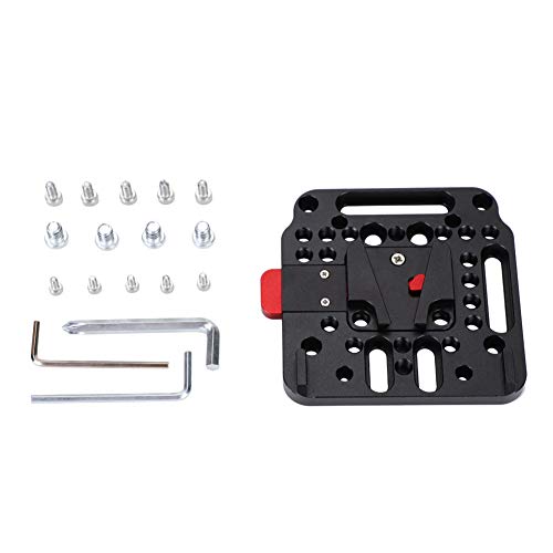 [Ampia gamma di applicazioni]progettata come piastra a sgancio rapido per batterie con attacco di blocco a forma di V. Più fori e scanalature di montaggio possono espandere le funzioni degli accessori. La dimensione è di circa 9,8 x 9 x 1,4 cm / 3,86 x 3,54 x 0,55 polliciadatto per mini v-lock kit