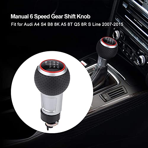[Pelle di alta qualità] Pomello cambio 6 manuale adotta materiali di alta qualità in metallo, plastica e pelle, resistenti al calore, resistenti all'usura e di lunga durata. Non facile da graffiare, la superficie liscia e la trama della pelle offrono un'esperienza di guida confortevole.adatto per pomello cambio rosso neroadatto per pomo adatto per audi a4