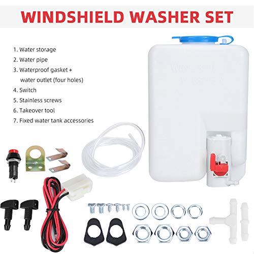 EBTOOLS serbatoio lavacristalli adatto per 12V Windshield Washer Bottle Kit,Universal Windshield Washer Pump 160186 Fluid Reservoir Bottle Kit Windscreen Glass Washing Bottle Tool Kit