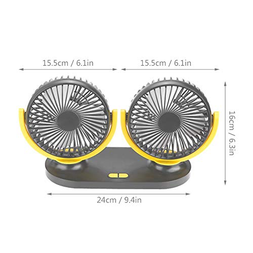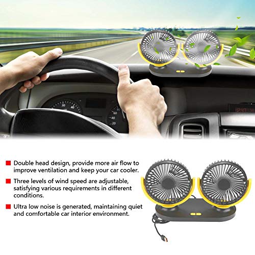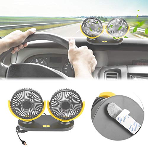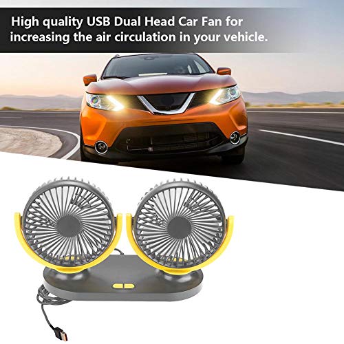 EBTOOLS Ventilatore per auto Ventilatore per auto USB Ventilatore per auto Ventilatore automatico Ventilatore 12V, Dual Head(Nero giallo)