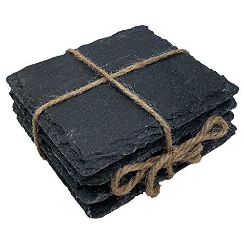 EBuyGB APOLLO THE HOUSEWARES BRAND Set di 4 sottobicchieri quadrati, 100% ardesia naturale, piedini in schiuma antigraffio, ottima idea regalo, dimensioni: 10 x 10 x 1 cm, nero
