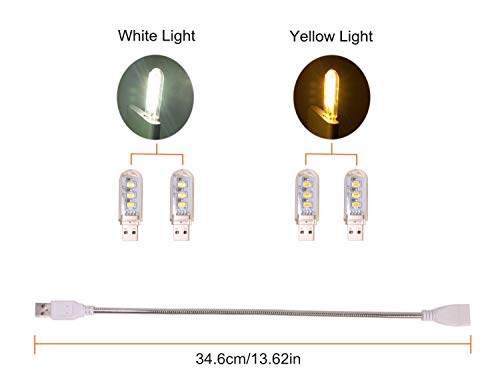 EBYPHAN LED Lampada USB, Luce LED USB Portatile, Luce Tastiera per PC Computer, Lampada da Lettura Regolabile, Collo di Cigno Flessibile + Luci Bianche/Gialle