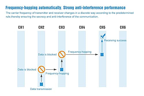 Hopping di frequenza: Quando il modulo è in modalità di salto di frequenza, funziona la funzione di salto automatico della frequenza, rispetto alla comunicazione a frequenza fissa, la comunicazione di salto di frequenza è più oscura e difficile da intercettare. La comunicazione di salto di frequenza ha anche una buona capacità anti-interferenza, anche se ci sono alcune interferenze di frequenza, può comunque comunicare sul punto di frequenza indisturbato