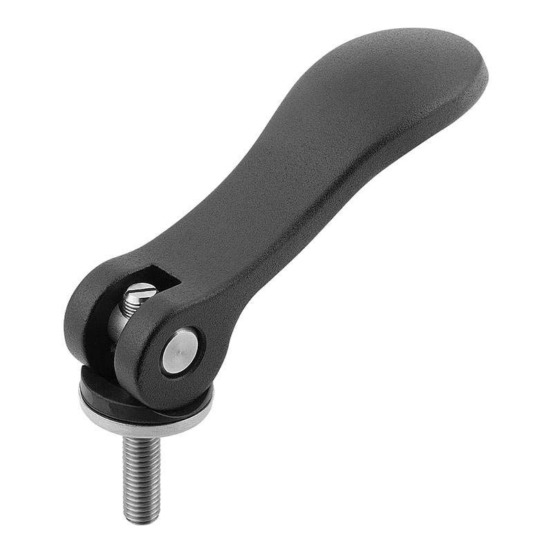 Materiale: stampa leva in alluminio pressofuso disco in plastica. Acciaio inox bullone dell' asse. Vite Prigioniera + disco acciaio o Acciaio inox. Versione: leva nero verniciato a polvere. Stampa disco nero. Bullone Blank dell' asse. Disco e vite prigioniera blu acciaio cromato o acciaio inox lucido. Nota: leva regolabile vengono utilizzati, quando la situazione del con angoli leva di asse lenzuolo solo una determinata posizione permette (Collegio stör). Adatto per azienda, ufficio, negozio, supermercato, negozi, mostra d'arte, casa, pubblicità segno e cartellone