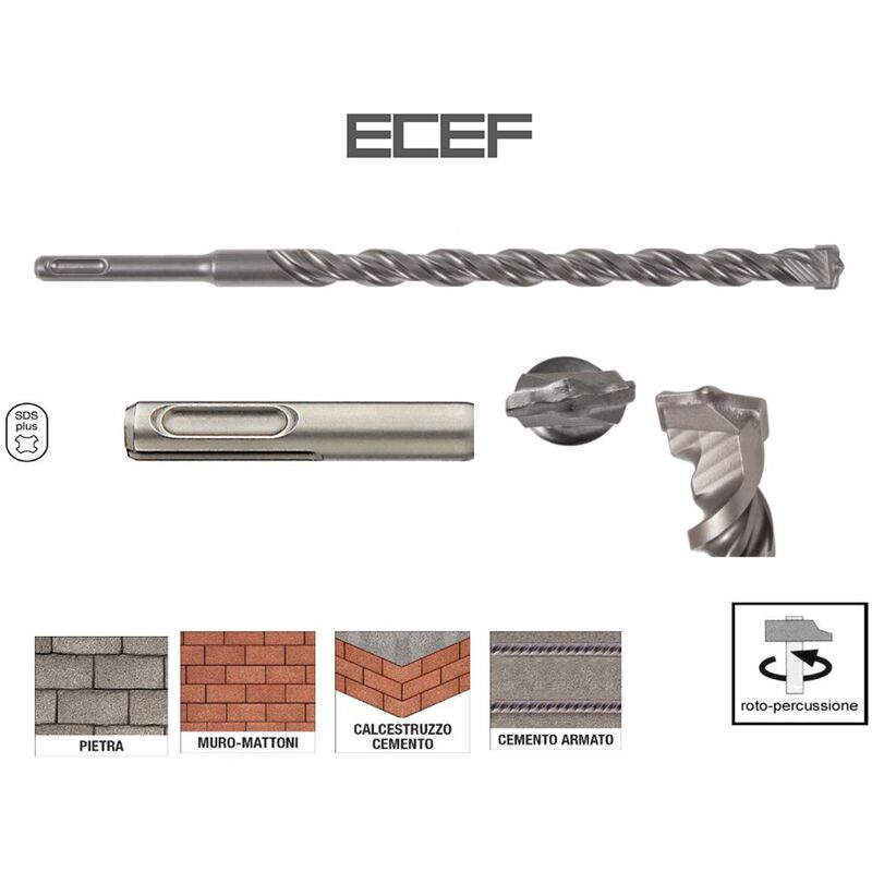 Punta per Muro SDS-PLUSRaptor marca, ECEF Per forare qualsiasimateriale non basta comprare un buon trapano, bisogna anche scegliere la puntadel trapano adatta alle proprie necessità. Ogni materiale ha caratteristichediverse e utilizzare la punta sbagliata significa rovinare l'attrezzo,costretto a lavorare sotto sforzo per tempi lunghi La punta da muro è la più robusta fra le punte ed è dotata all'estremità diplacchette in widia che consentono di affrontare l'alta velocità necessaria perfare un buco in un muro, soprattutto se in cemento armato, e la continuapercussione. Questo tipo di punte possono essere usate solo per cemento, calcestruzzo elaterizio e sono le sole che si possono usare perché le punte per legno o perferro non sono in grado di sostenere le sollecitazioni richieste per un foronel muro. SDS-PLUS cheoffre una maggiore velocità, una migliore resistenza all'acciaio del cementoarmato e un altissimo rendimento. Una nuova placchetta al carburo di tungstenocon geometria