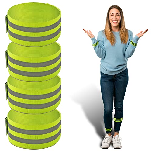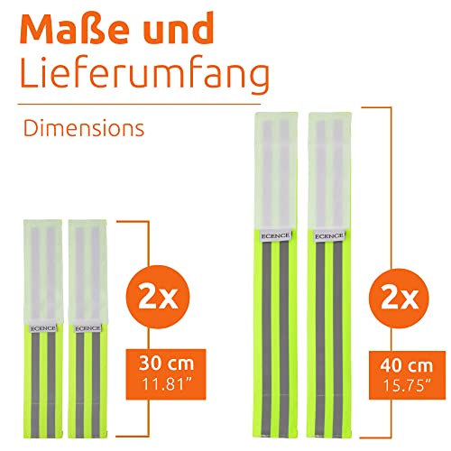 ECENCE 4X Catarifrangente Bracciale Nastro a Strappo (2X 40cm, 2X 30cm) Giallo Nastro Riflettente Bicicletta Bambini Adulti Polsino di Sicurezza Riflettente Elastic Protection Tape
