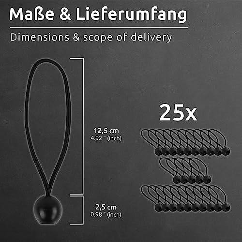 ECENCE 25x gommini di tensionamento, set di corde elastiche per fissaggio per teloni, anelli espansori con gancio a sfera di plastica, corde elastiche espansori per teloni, Nero