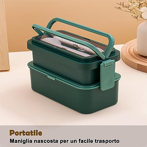 『Portami Ovunque』Preparate il vostro pranzo facilmente! Questo contenitore per il pranzo impilabile tutto in uno include tutto ciò che serve per gustare un porta pranzo. La forchetta e il cucchiaio integrati sono sempre a portata di mano per preparare facilmente i pasti in viaggio. Il contenitori porta pranzo standard è perfetto per studenti, uomini, donne, uffici, fabbriche, case e picnic all'aperto.