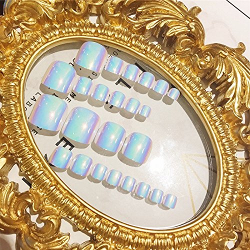 Echiq Hot vendita camaleonte per unghie finte 24PCS bianco viola verde chiaro metallizzato specchio per piede unghie dei piedi copertura completa per unghie finte