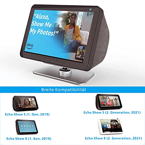 Usa la base in metallo: puoi facilmente ruotare il tuo Echo Show 8 per raggiungere l'orologio e non avere più bisogno di nessun altro oggetto di restrizione. Rotazione a 360 gradi.