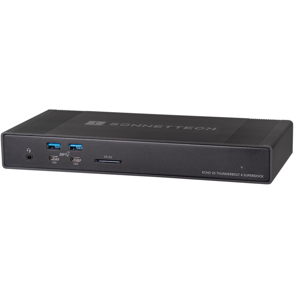 Con Sonnet Echo 20 Thunderbolt 4 SuperDock, è possibile collegare monitor, dispositivi Thunderbolt, periferiche USB e cavi Ethernet. È quindi possibile collegare tutto, dalla docking station al computer tramite un singolo cavo Thunderbolt. La docking station Echo 20 Thunderbolt 4 può persino caricare il laptop fino a 100W.