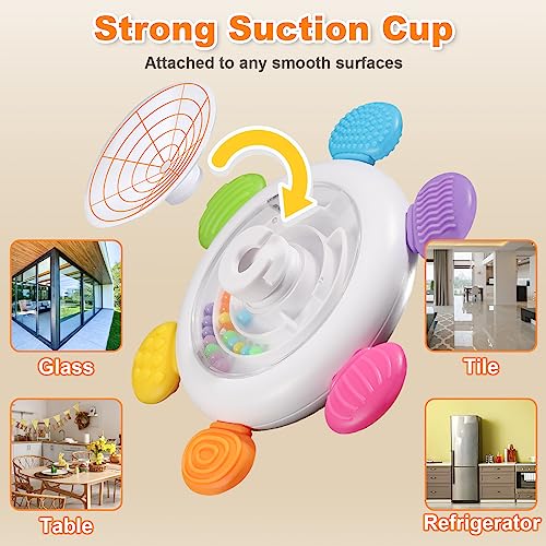 Ventosa Potente: La potente ventosa del giocattolo rotante per bambini può essere applicata a qualsiasi superficie liscia, come vetri, vasche da bagno e seggioloni. Quando fanno il bagnetto o mangiano, il fidget spinner può attirare l'attenzione dei bambini ruotando.