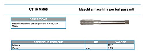 EchoENG Maschio filettatura a macchina HSS per fori passanti DIN 376/A M12 UT 10 MM06