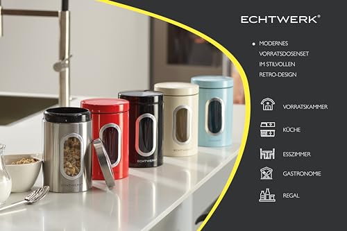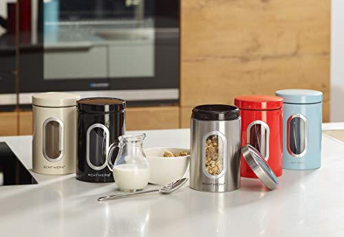 ECHTWERK Elegante set di 2 contenitori per conservare farina, zucchero, cereali, tè, contenitore in metallo con coperchio ermetico e grande finestra