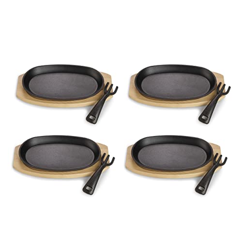 ECHTWERK Padella in ghisa, manico rimovibile, già cotta, adatta per forno, barbecue, barbecue e induzione, ideale per servire, 4 pezzi, 24 x 4 x 28 cm