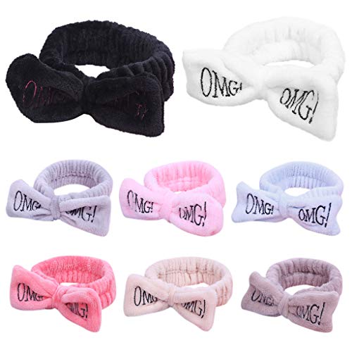 ECMQS - Fascia per capelli da donna/ragazza, con fiocco, con lettera OMG ricamata, elastica, per trucco, flanella, colore caramella, 8 colori