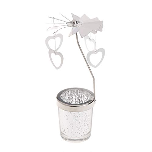 ECMQS Rotazione Rotante Argento Candela Riscaldatore Piatto Candela Metallo Giostra Perfetto per Natale/Matrimonio Decorazione Domestica (Amore)