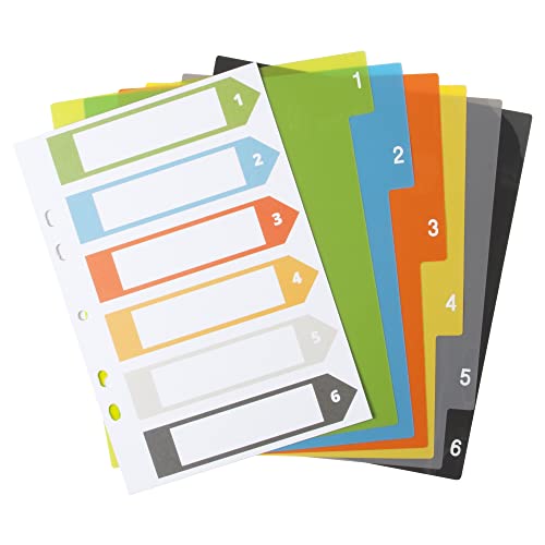 Set di 6 divisori codificati a colori e numerati da 1 a 6 per archiviare e organizzare documenti e documenti in raccoglitori ad anelli e fascicoli
