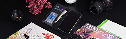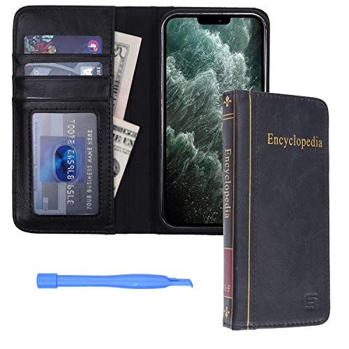 Eco-Fused Custodia a Libretto compatible per Apple iPhone 12/12 Pro - Stile Portafoglio con Porta Carte - Design Enciclopedia Vintage - Finta pelle - Strumento di Rimozione e Panno di Pulizia