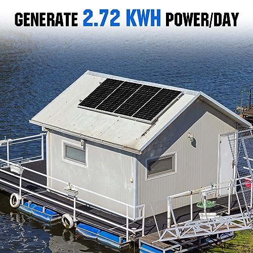 ECO-WORTHY Kit Pannello Solare da 680 Watt: 4 Pannelli Solari Monocristallini 170W con Regolatore di Carica MPPT 40 A + Accessori di Montaggio per Roulotte, Camper, Barca, Applicazione Off-grid