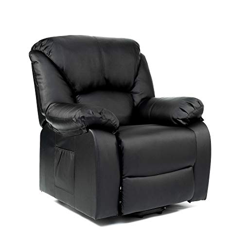 ECODE Poltrona Massaggiante Relax Con Alzapersona Chamonix, Reclinazione elettrica 160°, Funzione Calore, Programmi Auto, Vibro Ondulazione, A++, ECO-8590UP N (Nero)