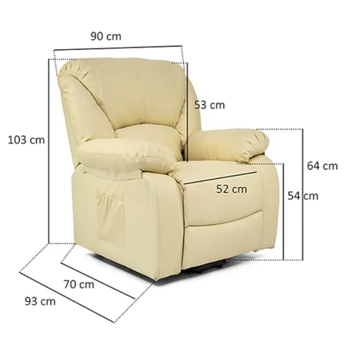 SISTEMA ELEVATORE: Con il telecomando con la semplice pressione di un pulsante, la poltrona massaggiante si solleverà dolcemente per incorporare l'utente e lasciarla in posizione eretta e sollevata, in questo modo le persone con mobilità ridotta o qualche tipo di lesione, potranno alzarsi senza il minimo sforzo. Premendo il secondo pulsante, abbasseremo la poltrona lentamente fino alla sua posizione normale. Se continuiamo a premere, la base dei piedi verrà sollevata prima per poter leggere o guardare la TV