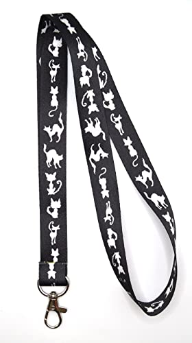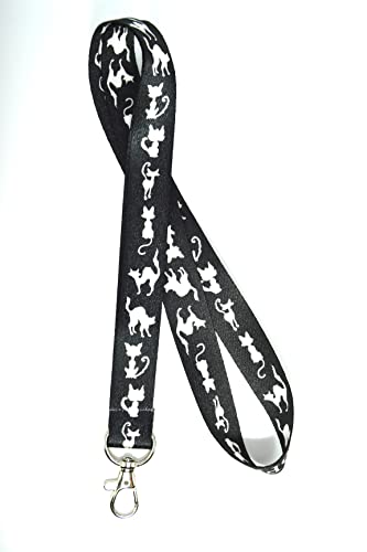 EcoFirst 100% PET cordino da collo Laccetto neck lanyard in materiale eco con clip in metallo per chiavi USB, carte id badge, gatti bianchi bambini in nero