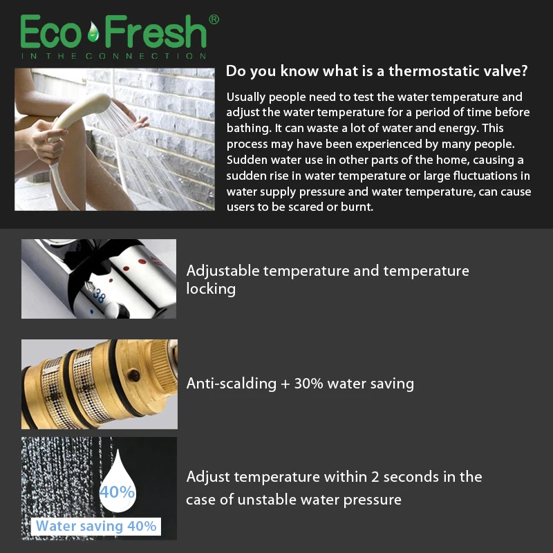 Ecofresh Thermostatic Mixer Shower Faucets Bathroom Faucet Thermostatic Mixing Valve Shower Set Thermostatic Shower Faucet