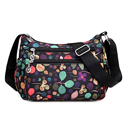 Ecohaso Borsa a tracolla da donna multi tasca casual borsa a tracolla in nylon impermeabile, T-01 Foglie Fortunate, L, Totes