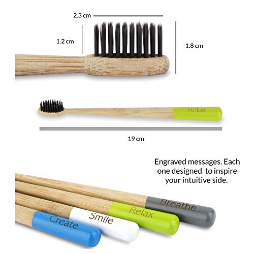New - Ecolifeninja Elite sostenibile spazzolini con setole infuso di carbone di bambù, confezione da 4, senza BPA, organico, biodegradabile, vegan, eco-friendly unico spazzolini igiene dentale, naturale, zero rifiuti imballaggio