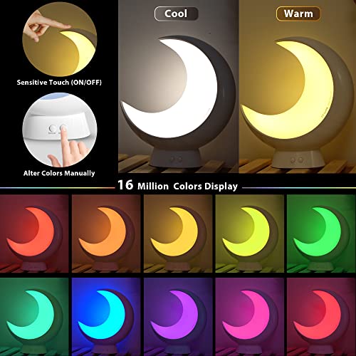 Lampada da comodino segmentata a mezzaluna RGB che cambia colore. La lampada da tavolo a mezzaluna per camera da letto può essere combinata con diversi colori contemporaneamente (fino a 5 colori), 16 milioni di colori diversi e 18 scene a scelta. Inoltre, la funzione di colore della fotocamera può riconoscere i colori e rappresentare sulle luci. Questa luce d'atmosfera può aiutarti a creare una varietà di atmosfere, in modo che voi e la vostra famiglia o gli amici possiate godervi al meglio.