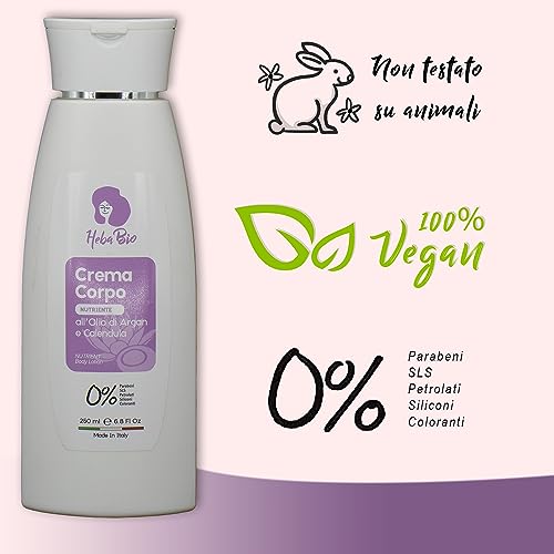 ECONANO GREEN PROJECT - Crema Corpo Bio all'olio di Argan e Calendula per Pelli Secche - Nutriente e Revitalizzante - Senza Siliconi, Dermatologicamente Testata - Flacone da 250 ml