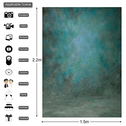 Econious Sfondo Fotografico, 1,5 m x 2,2 m Sfondo fotografico ciano astratto, Sfondo fotografico professionale per oggetti di scena da studio, con tasca per asta (solo sfondo)