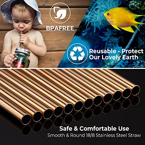 Ecooe 12 Bronzo Cannucce in Acciaio Inox Set, Cannucce Riutilizzabili in Metallo Senza BPA, per Frullatii Frappè Cocktail Succhi con 2 spazzole per pulizia Lavabili in lavastoviglie, frullati e succhi