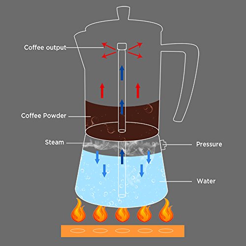Cosa offriamo: Ecooe caffettiera moka, guarnizione extra, 18 mesi di garanzia, rimborso incondizionato e l'assistenza del nostro servizio clienti.