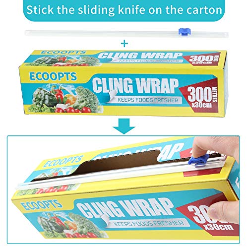 ECOOPTS - Pellicola adesiva con dispenser e taglierina, adatta per microonde e congelatore, 30 cm x 300 m