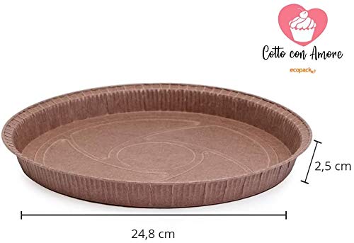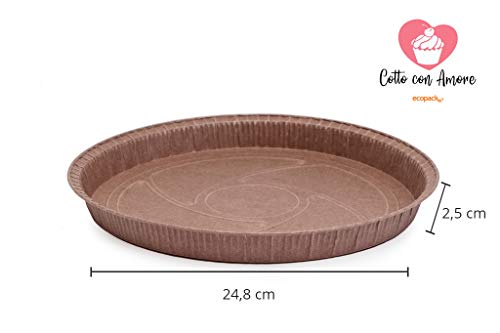 Ecopack, Set Teglie Monouso, per Crostate e Torte, in Carta Antiaderente, Made in Italy, Resistente Fino a 220°C, Linea Cotto con Amore, Dimensioni 24,8x2,5cm, 30 Pezzi