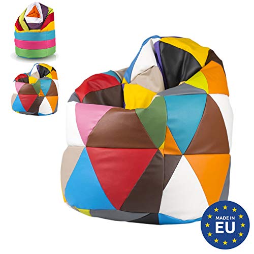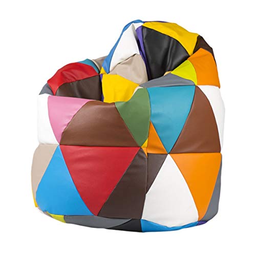 Ecopuf Pouf a Sacco Design Patchwork Ecopelle Taglia XL - Puff Poltrona Sacco da Interno/Esterno - Pouf Poltrona Antistrappo Antimacchia - Poltrona a Sacco con Imbottitura in Perle di Polistirolo