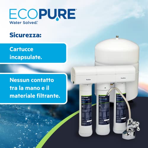 ECOPURE | Sistema di Filtrazione dell'Acqua Potabile a Osmosi Inversa in 3 Fasi (ECOP30) | Facile Installazione Sotto il Lavello | Riduzione di Piombo, Sostanze Chimiche e Cloro | Rubinetto Incluso
