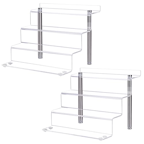ECOSEAO Espositore per alzata in acrilico, 4 ripiani per display POP, espositore a più livelli per display, display in acrilico da tavolo Contertop per decorazione e organizer (confezione da 2)