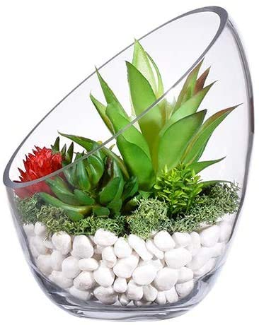★ Speciale design a bocca obliqua. Ciotola in vetro inclinato terrario con vetro soffiato a mano cristallino, crea un'atmosfera di moda, rende la tua vita più poetica e rilassante. ecosides ciotole di vetro trasparente oblique, ecosides ciotola di vetro trasparente 7 pollici, ecosides ciotole di vetro, ciotola di vetro decorativo, vaso trasparente della bolla, vetro trasparente ciotole