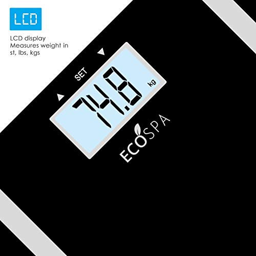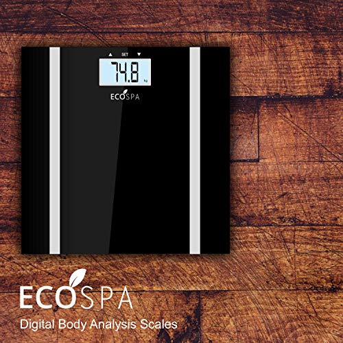 EcoSpa - Bilancia digitale pesapersone Bilancia digitale per il bagno, analizzatore SMI, in vetro nero, con schermo LCD elettronico.