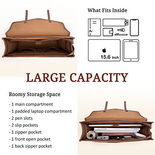 ECOSUSI Borsa per computer portatile 15.6'' Donna Borsa a Mano in PU Pelle Grande Capacità Porta Documento Donne per Lavoro Pelle Borsa a Tracolla, marrone, Elegante