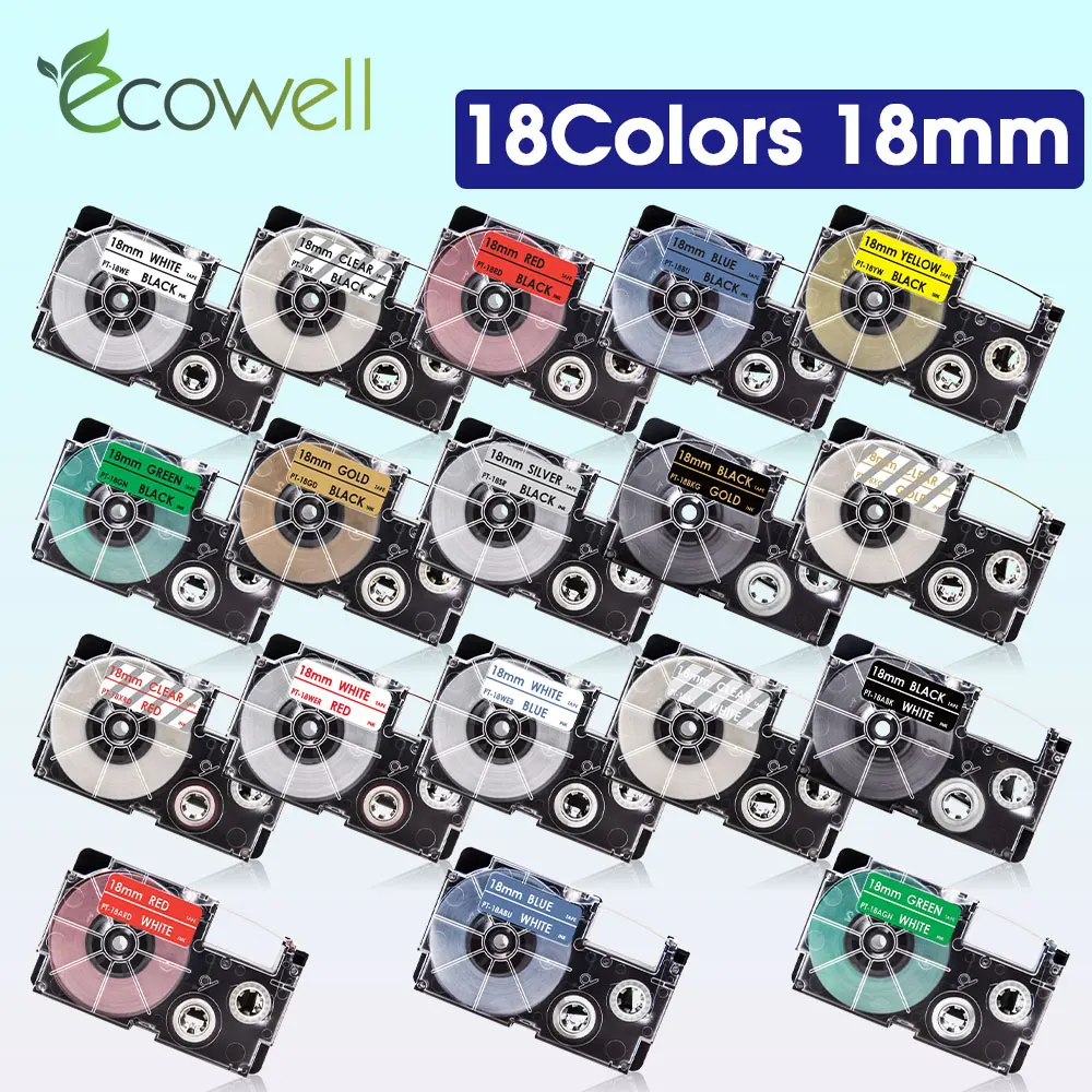 Ecowell Multicolors Compatible for Casio XR-18WE XR-18RD XR-18YW XR-18X XR-18GN 18mm label for Casio KL-120 KL750 EZ Label Maker