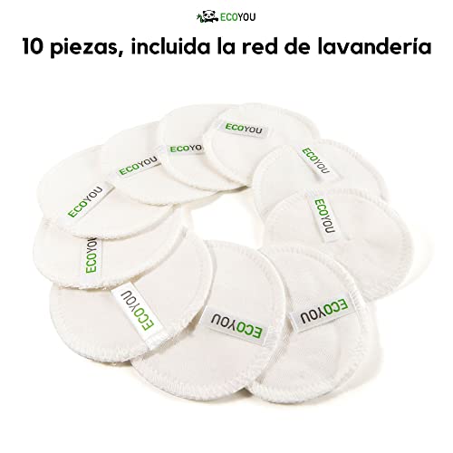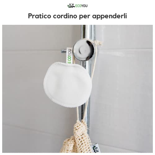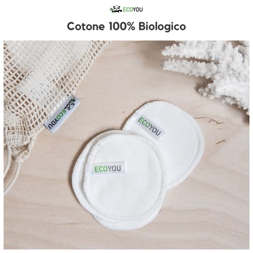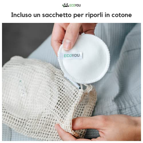 EcoYou - Dischetti Struccanti Lavabili in Cotone Biologico - Pads Rimuovi Trucco in Cotone Riutilizzabili 10 PEZZI, Cura del Viso Sostenibile per le Donne, Con Sacchetto in Cotone, Colore: Bianco