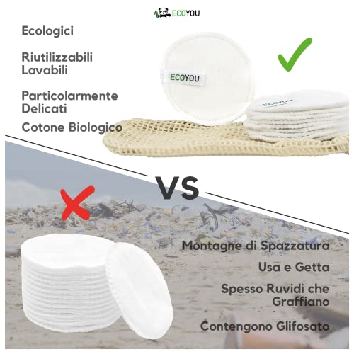 DISCHETTI A ZERO RIFIUTI - Grazie ai dischetti struccanti lavabili di EcoYou dichiarerai guerra alla spazzatura. I dischetti di cotone riutilizzabili rispettano l'ambiente e puliscono delicatamente