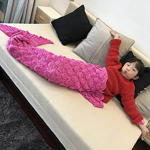 ECrazyBaby Coperta a Coda di Sirena indossabile all'Uncinetto, Tutte Le Stagioni Caldo Coperte da Letto a Maglia Divano Soggiorno Trapunta per Bambini, Modello di Squame di Pesce, 140 x 70 cm, Rosa